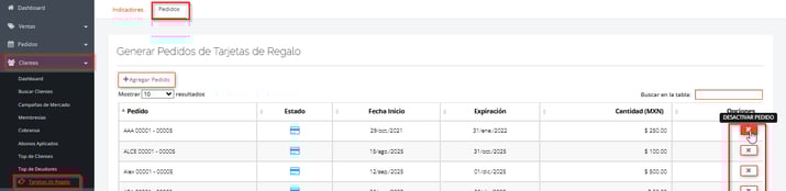 2. Dar clic en el botón Desactivar Pedido.