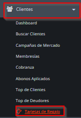 1.1. Al desplegarse las opciones, elegir Tarjetas de Regalo.