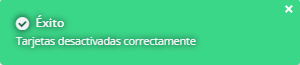 4. Se muestra un mensaje color verde indicando que las tarjetas fueron desactivadas correctamente.