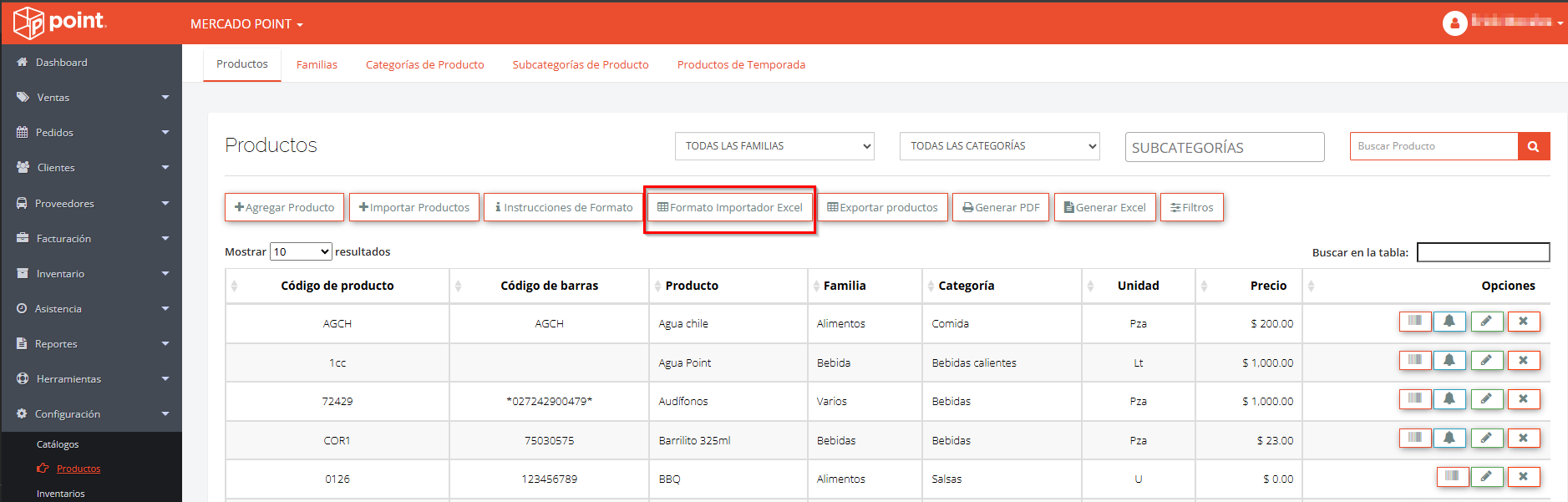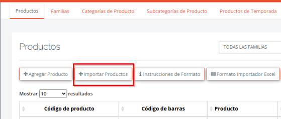 5.- Una vez terminado de editar el Formato Importador Excel, regresamos al portal web y seleccionamos Importar Productos.