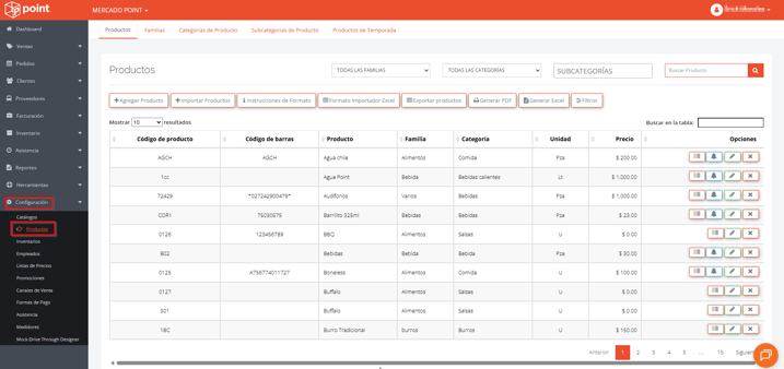 1.1. Al desplegarse las opciones, elegir Productos.