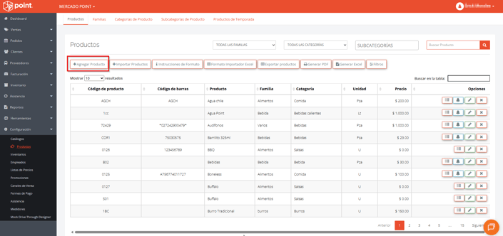 2. Dar clic en el botón Agregar Producto.